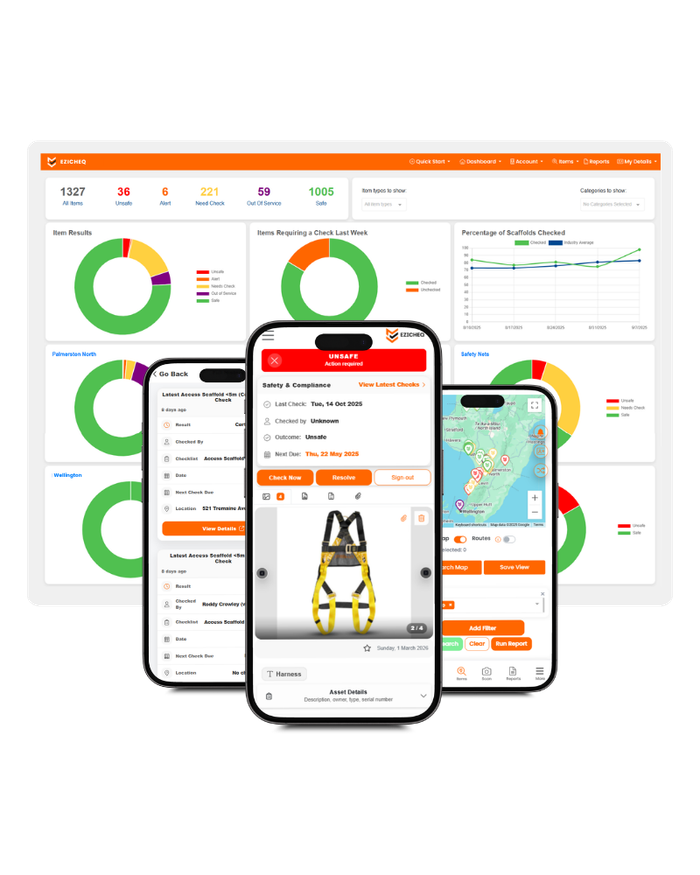 EZICHEQ makes safety and compliance simple for high-risk industries. Track inspections, manage equipment, monitor jobsites, and oversee team competency in one easy platform.