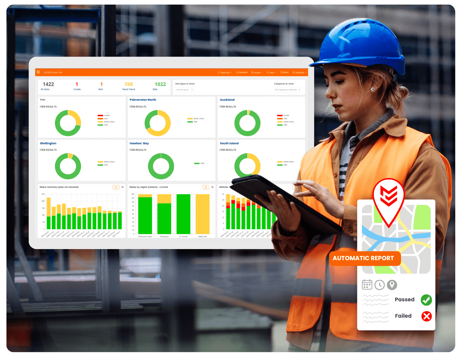 Capture checks in real time with photos and signatures. See what’s safe and spot issues fast.
