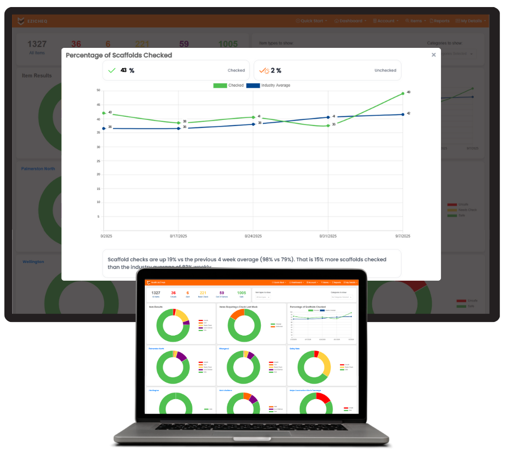For scaffolding businesses in New Zealand, this is a gamechanger. You can now clearly see how consistently your checks are completed compared to the wider industry, giving you real-world insight into whether your safety practices are above, below, or in line with the standard.